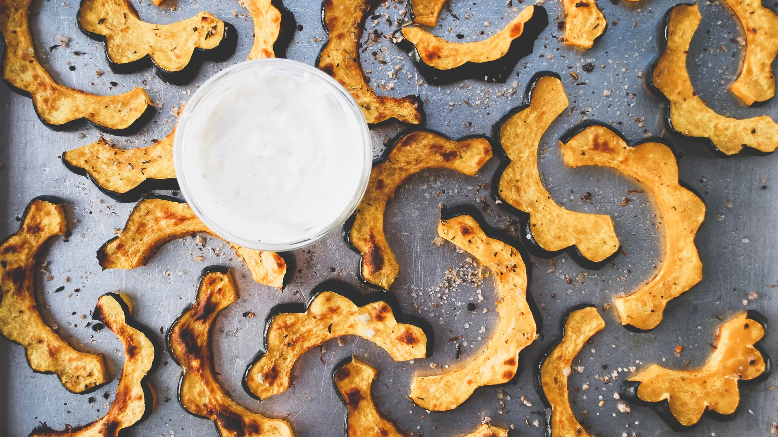 Roasted Acorn Squash with a Yogurt Garlic Aioli